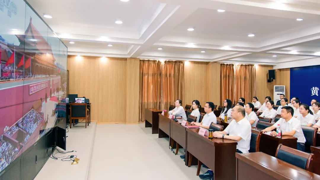 9月3日上午,纪念中国人民抗日战争暨世界反法西斯战争胜利80周年大会在北京隆重举行。黄石港区人民法院全体干警在五楼视频会议室整齐就座,集中收看大会盛况,共同回望峥嵘岁月,铭记伟大胜利,汲取奋进力量。
