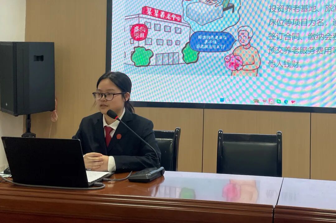 讲座中,詹陆怿结合老年人的日常生活场景,深入剖析了“虚假养老服务”“保健品诈骗”等常见的养老骗局。她提醒老年人要警惕以“预定养老床位”为名的非法集资或诈骗行为,如身体不适需到正规医院就医,警惕所谓的“专家义诊”“免费体检”陷阱,不盲目相信保健品功效。